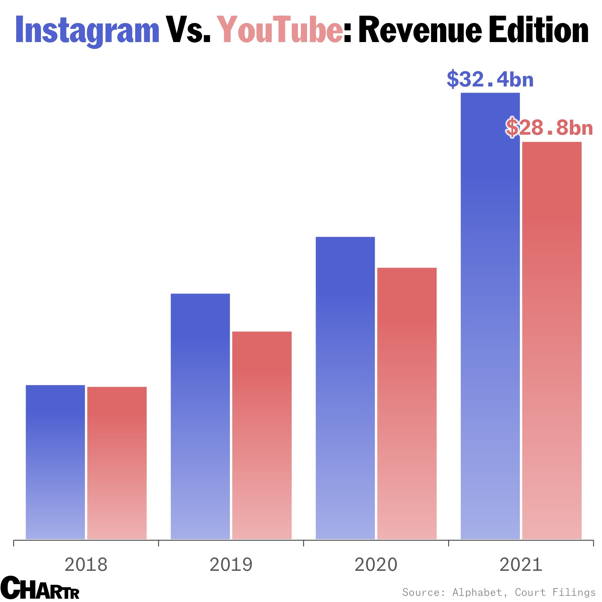 We finally know how much money Instagram makes — thanks to documents disclosed by a court filing, which revealed that the social media site raked in $32.4 billion in advertising revenue in 2021, nearly 30% of Meta’s total. That’s 12% more than the net amount that Alphabet reported from YouTube in the same year... although it’s worth noting that YouTube splits a substantial portion of what it generates with its content creators.