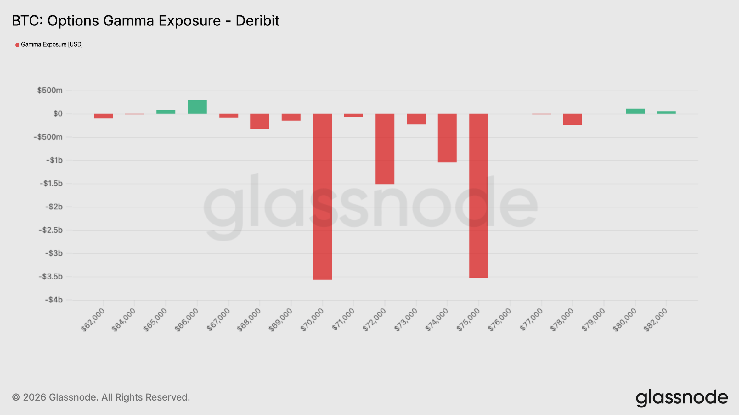 Finally, Glassnode analysts said that what stands out in this expiry is market makers positioned within a corridor of short gamma (which amplifies volatility), concentrated between $70,000 and $75,000 — a zone where price can accelerate in either direction, they said in a report.