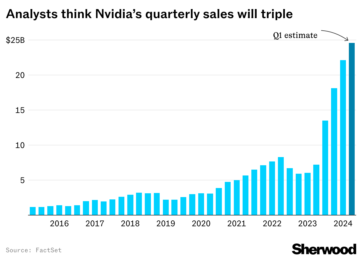 The juggernaut semiconductor company is set to release earnings on Wednesday after the close of trading. It would be an understatement to say expectations — driven by searing demand for Nvidia’s graphics processing units, or GPUs, needed for artificial intelligence computing power — are high. The stock rose 90% so far this year, and has tripled over the last 12 months.