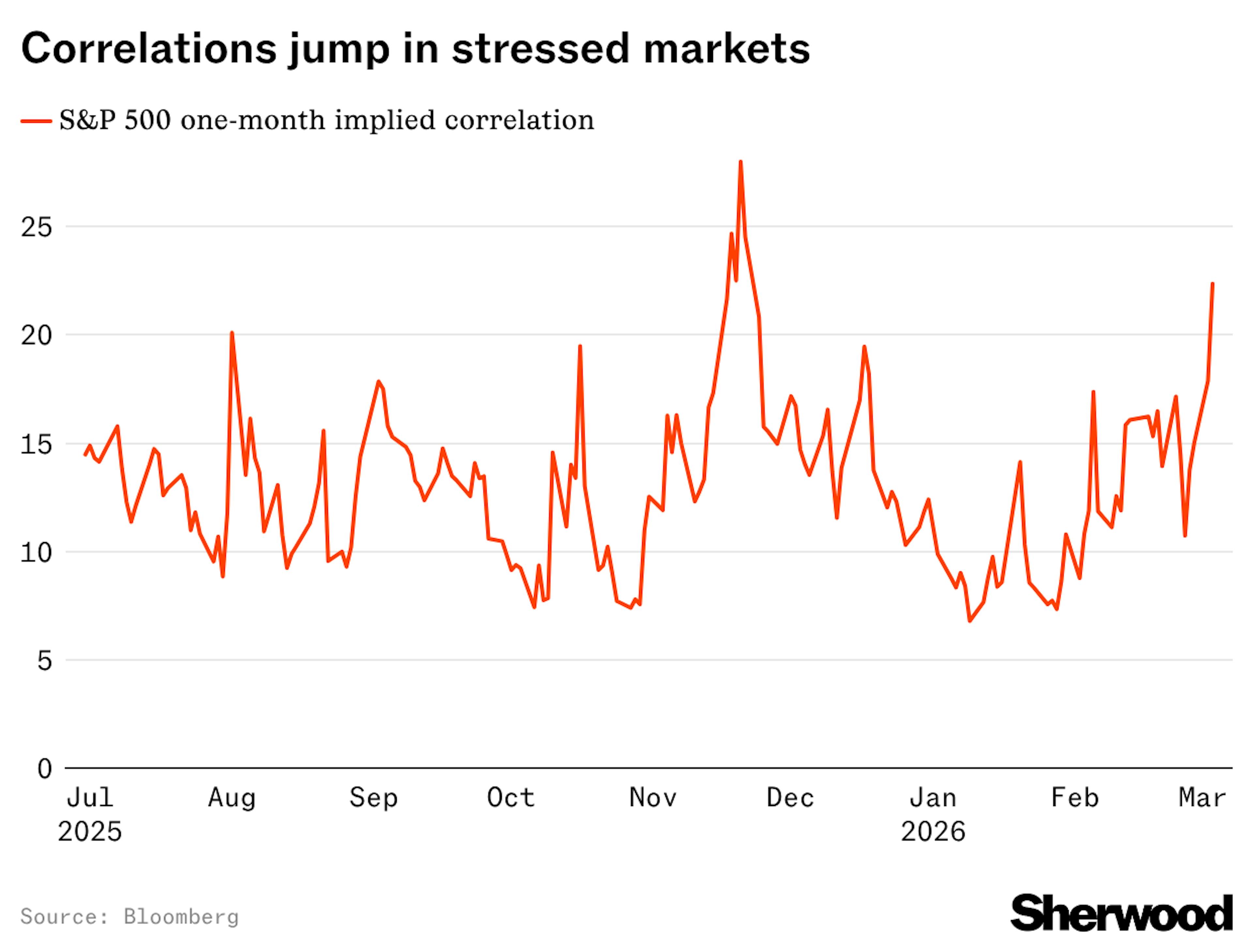 There have been only four previous sessions with this correlation since the iShares Bitcoin Trust’s inception in early 2024. One-month correlations — the extent to which the S&P 500’s constituents are expected to move in the same direction, derived from options prices — spiked, and hit their highest close since November 21.