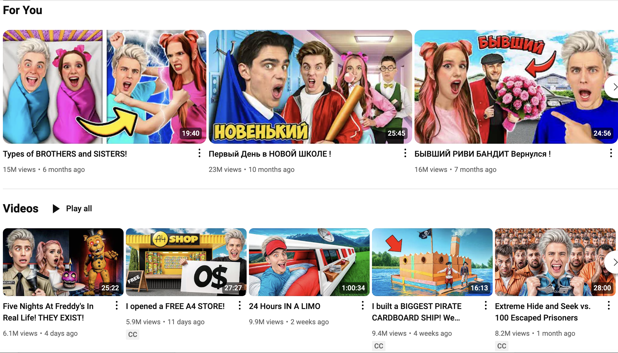 Donaldson hasn't said anything directly about the Stokes brothers, but in February he did accuse a Belarusian YouTuber named Vlad Bumaga of pulling the same thumbnail trick. Bumaga’s channel, A4, has over 60 million subscribers, making it the biggest Russian-language channel on YouTube. He had an exceptionally good July, growing by 7 million new subscribers — his biggest month ever.